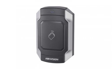 Hikvision’s DS-K1104 Series vandal-resistant cardreaders with dip switch are rated IK10. They supportRS-485 and Wiegand (W26/W34) protocols.