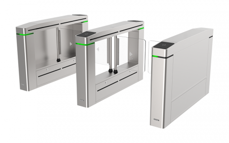 The DS-K3B601-x series swing barrier with 12 pairs of IR lights is designed to detect unauthorized entrances and exits. In coordination with the access control system, a person can authenticate and pass through the lane by swiping their ID card or face (integrated with DS-K5603-Z). The swing barrier is widely used at stadiums, construction sites, residences, etc.
